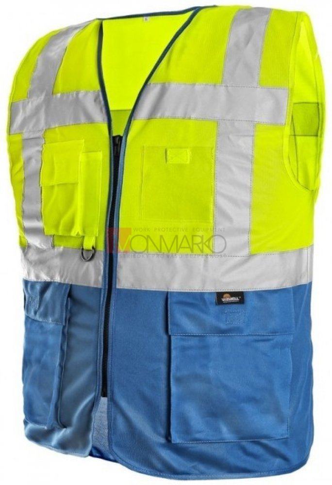 Vlastnosti: Dvojfarebná výstražná vesta.