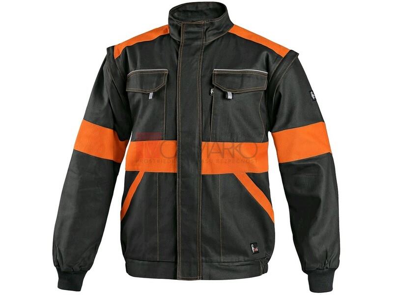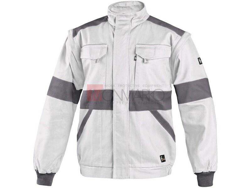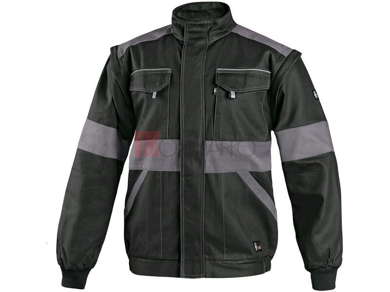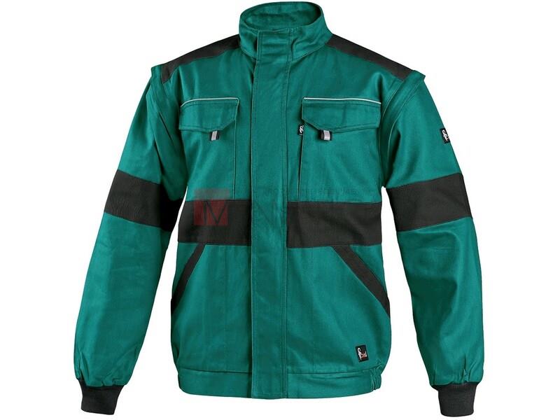 Pánska montérková blúza, odopínacie rukávy s pružnou manžetou, kryté zapínanie na zips a suché zipsy, náprsné vrecká s chlopňami, skryté náprsné vrecko na zips, jednoduché bočné vrecká, spodná časť na bokoch do gumy, reflexné doplnky. Odporúčané použitie: stavebníctvo, ľahký priemysel, logistika, skladová manipulácia, autoservisy, údržba, montáže, poľnohospodárstvo, záhrada, hobby
