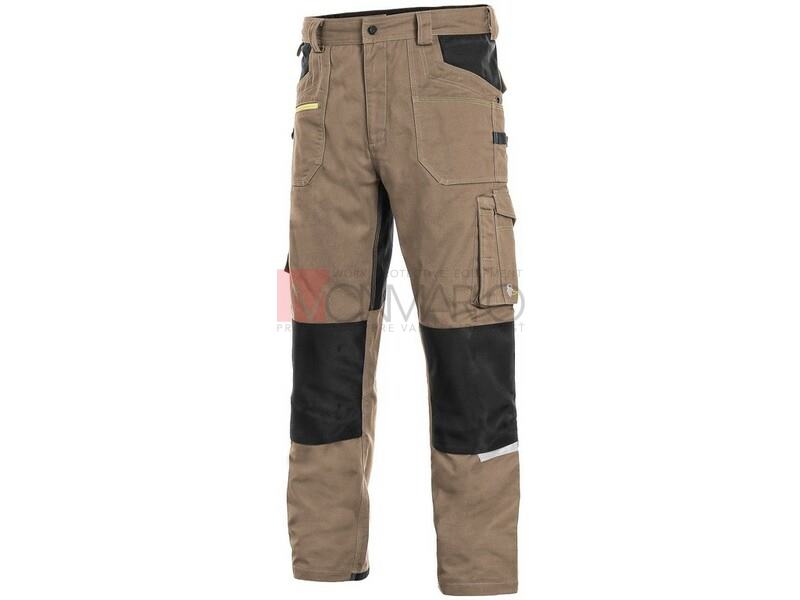 Pánske montérkové nohavice, strečová tkanina umožňujúca voľný pohyb, pás s pútkami na opasok, predné vrecká s vreckom na zips, multifunkčné vrecká na oboch stranách, kolená zosilnené 600D polyesterom s možnosťou vloženia kolenných výstuh, dve zadné vrecká - jedno s klopou, zadné spodné nohavice vystužený 600D polyesterom, reflexné doplnky. Odporúčané použitie: strojárstvo, stavebníctvo, ľahký priemysel, automobilový priemysel, logistika, skladová manipulácia, špedícia, autoservisy, údržba, montáže, poľnohospodárstvo, záhrada, hobby.