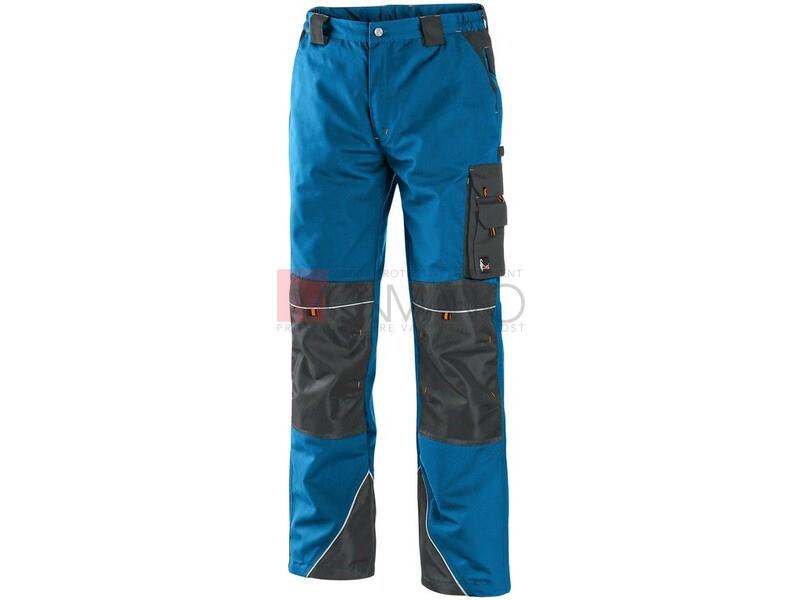 Pánske montérkové nohavice, pás s pútkami na opasok a gumou v bokoch, predné klinové vrecká, multifunkčné vrecká na oboch stranách, kolená zosilnené materiálom 600D polyesterom s možnosťou vloženia kolenných výstuh, dve zadné vrecká s chlopňami, spodná časť nohavíc vystužená materiálom doplnky. Odporúčané použitie: stavebníctvo, strojárstvo, ľahký priemysel, automobilový priemysel, logistika, skladová manipulácia, špedícia, autoservisy, údržba, montáže, poľnohospodárstvo, záhrada, hobby.
