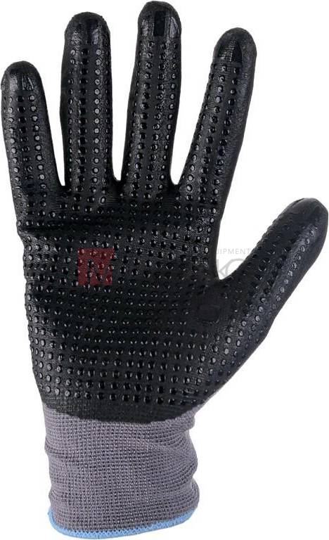 Vlastnosti: Rukavice dlaňami a prstami povrstvenými nitrilovou penou s priedušnou úpravou MICROFOAM as PU terčíkmi na vodnej báze.