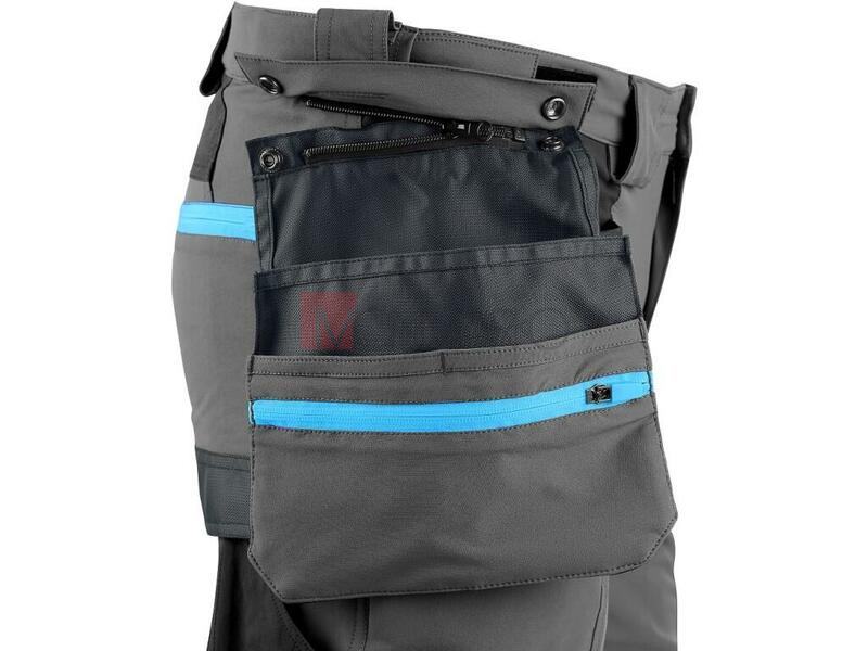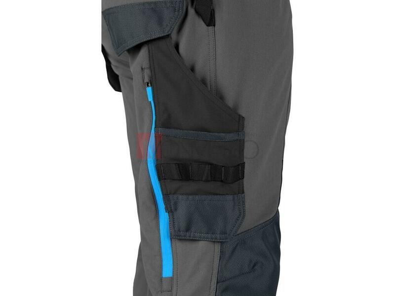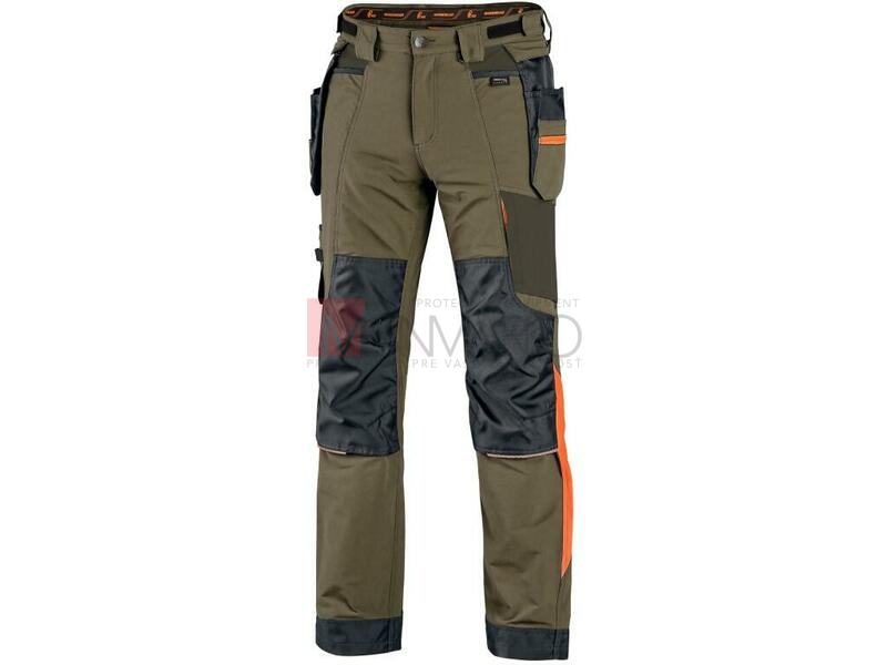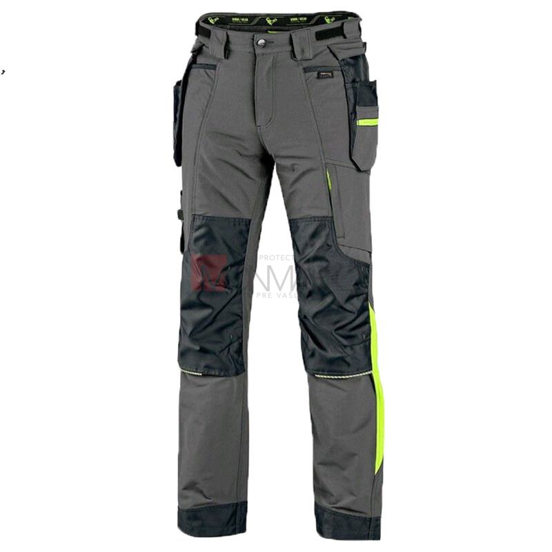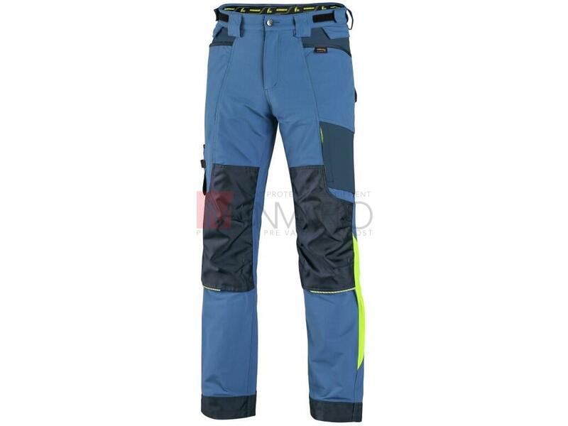 Pánske montérkové nohavice s užším moderným strihom nohavíc s kontrastnými farebnými a reflexnými doplnkami. Konštrukcia 4-way stretch umožňuje rozťahovanie materiálu vo všetkých štyroch smeroch a tým aj ľahký a voľný pohyb. Vysoké percento nylonu zaručuje schopnosť rýchleho schnutia. Vybavenie nohavíc: flexibilný pás s možnosťou upravenia veľkosti a pútkami na opasok, 2 predné vrecká, 2 odnímateľné vrecká na náradie vystužené materiálom CORDURA®, zipsové vrecko na stehne s odnímateľným puzdrom na ID kartu, multifunkčné bočné vrecko, 2 zadné vrecká v spodnej časti výstužené materiálom CORDURA®, zipsová ventilácia v zadnej časti stehien, kolená zosilnené materiálom CORDURA® s možnosťou vloženia kolenných výstuh, spodná časť nohavíc vystužená materiálom CORDURA®. Nohavice sú vybavené EASY-PROLONG systémom, ktorý umožňuje ľahké predĺženie strihu na vyššiu postavu uvoľnením švu na nohaviciach. Odporúčané použitie: strojárstvo, stavebníctvo, ľahký priemysel, automobilový priemysel, logistika, skladovanie, špedícia, autoservisy, údržba, montáže, poľnohospodárstvo, záhrada, hobby a voľný čas.