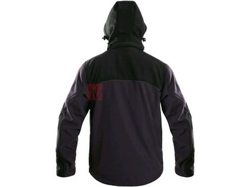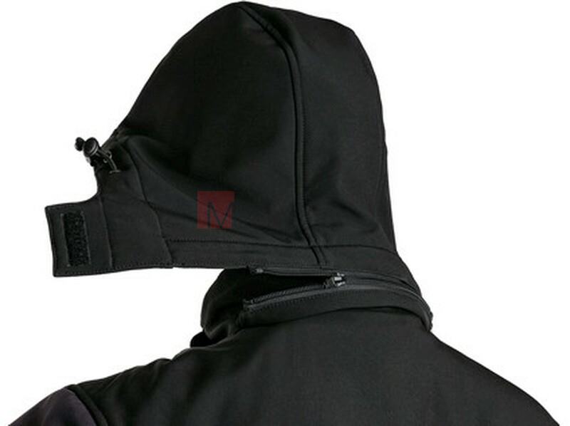 Pánska softshellová bunda s odopínacou kapucňou, odolná proti vode a vetru, zapínanie na zips, vetranie v podpazuší, rukávy s regulovateľnými manžetami, náprsné vrecko na zips, sťahovanie v dolnom okraji, 2 bočné vrecká na zips, reflexné doplnky, TPU membr proti prieniku vody 10 000 mm mimo oblasti švov, paropriepustnosť 3 000 g/m2/24h.