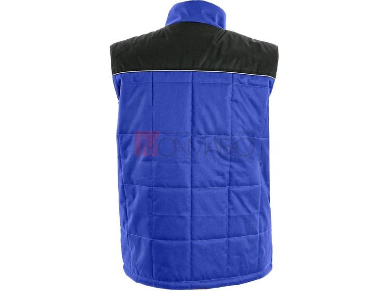 Pánska zateplená vesta, vodeodolná s fleecovým golierom, reflexné výpustky, zapínanie na zips, sťahovanie v dolnom okraji. Vrecká: spodné dve vrecká s reflexnými výpustkami zapínané na zips, náprsné vrecká: na pravej strane dve malé vrecká zatvárané na pätky so suchým zipsom, na ľavej strane jedno vrecko na zips, druhé zatvárané na pätku so suchým zipsom a malým tunelom na ceruzku. Jedno vnútorné vrecko na pravej strane.