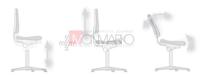 Vlastnosti: ESD vinylová stolička do čistých priestorov na kolieskach. Nastaviteľná výška aj uhol operadla. Výškovo nastaviteľný sedák pomocou plynového piestu.