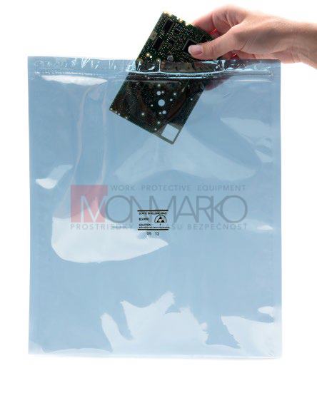 Vlastnosti: Elektrostatické tieniace vrecká na ochranu komponentov citlivých na statickú elektrinu. Na skladovanie dosiek plošných spojov a komponentov atď, alebo na ich prepravu. Čiastočne transparentné.