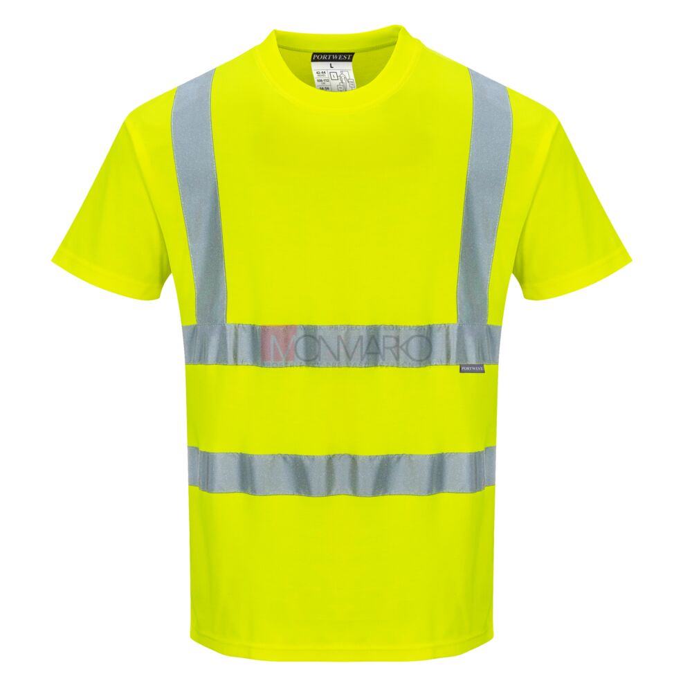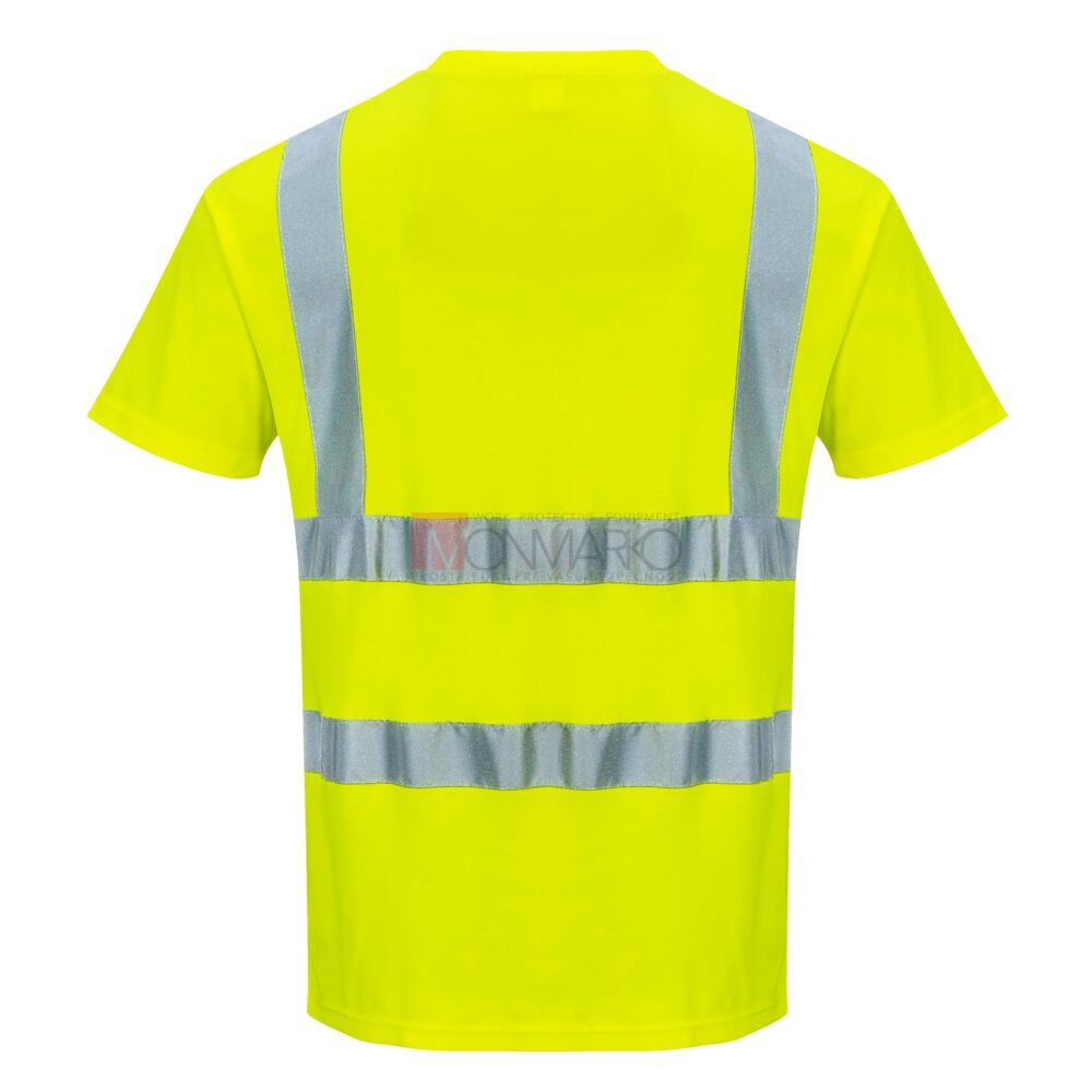 Vlastnosti: Reflexné tričko s krátkym rukávom. Použitie bavlnenej komfortnej tkaniny, ktorá je ľahká a priedušná, toto tričko má spevňujúcu pásku na ramennom šve pre väčšie pohodlie a využíva reflexné pásiky pre lepšiu viditeľnosť.