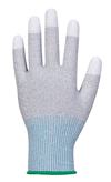 Vlastnosti: Rukavice odolné proti prerezaniu úrovne C na ochranu pred porezaním a ostrými predmetmi. 13g polyester a uhlíkové vlákna, ktoré odvádzajú statickú elektrinu. Končeky prstov potiahnuté PU pre dokonalú obratnosť. Na použitie pri montovaní elektroniky, testovania a pre precíznu prácu Vhodné na použitie s väčšinou zariadení s dotykovou obrazovkou. Predávané po 12 párov v balíčku