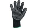 Pletené rukavice s antivibračnými vankúšikmi z penového latexu v dlani, pružná manžeta. Balené s blistrom. Odporúčané aplikácie: práca s vibračným náradím, údržba zelene, práca s motorovou pílou, cestné vŕtačky, ponorné vibračné stroje, brúsky.