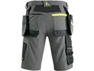 Pánske montérkové kraťasy s kontrastnými farebnými a reflexnými doplnkami. Konštrukcia 4-way stretch umožňuje rozťahovanie materiálu vo všetkých štyroch smeroch a tým aj ľahký a voľný pohyb. Vysoké percento nylonu zaručuje schopnosť rýchleho schnutia. Vybavenie: flexibilný pás s možnosťou upravenia veľkosti a pútkami na opasok, 2 predné vrecká, 2 odnímateľné vrecká na náradie vystužené materiálom CORDURA, vrecko na zips na stehne, multifunkčné bočné vrecko, 2 zadné vrecká v spodnej časti vystužené materiálom CORDURA. Odporúčané použitie: letný pracovný odev, strojárstvo, stavebníctvo, ľahký priemysel, automobilový priemysel, logistika, skladovanie, špedícia, autoservisy, údržba, montáže, poľnohospodárstvo, záhrada, hobby a voľný čas.