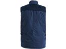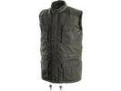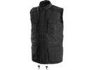 Pánska zateplená vesta, ramená a golier pošitý manšestrom, pružné stiahnutie prieramku, zapínanie na zips krytý légou, sťahovanie v dolnom okraji, 8 vonkajších vreciek, reflexné doplnky, vnútorné vrecko na zips.
